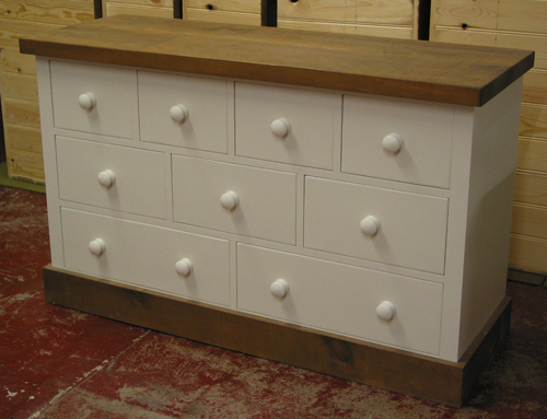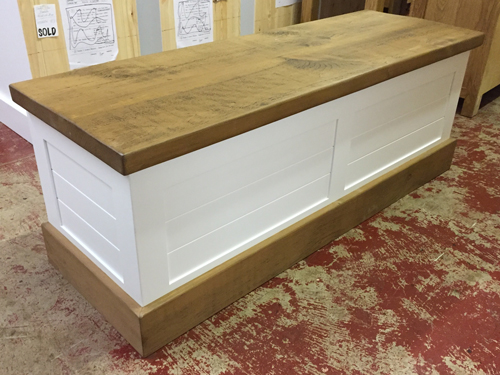 Thick Rustic Quebec Yellow Tops, Solid Redwood Pine Carcasses, Option of Smooth Painted Redwood or Rustic Waxed Plinth Base,