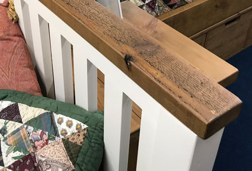 with saw & gripper marks an intended characteristic of this finish. A hand applied 'antique wax' is used to finish these rustic elements.