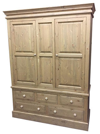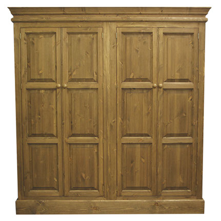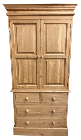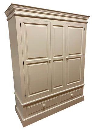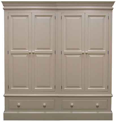 Cornice Tops to Wardrobes, Fielded Door Panels with Beaded Frames, Fielded Drawer Faces, Moulded Edges to Chest Tops & Plinth Base, Dovetail Drawers,
