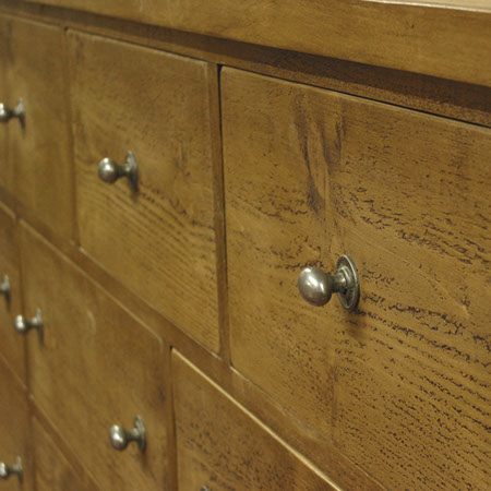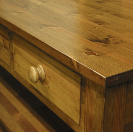 Rustic timber is treated using a traditional 'antiquing' process, opening the grain and giving more depth to the final colour. An authentic aged antique wax finish results when combined with several coats of hand applied Fiddes 'Stripped Pine' Supreme Wax.