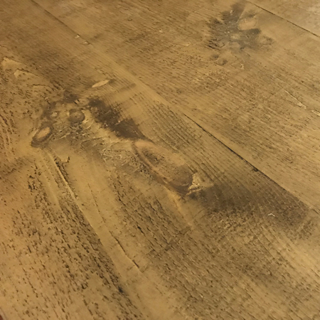 Sanded smoother, while maintaining deeper marks & features. Although there will be some natural colour variation between reclaimed timbers, a light antique stain is applied prior to waxing, to achieve a more consistent colouration to this finish.