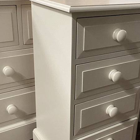 A deeper brown antique stain is applied prior to finishing with a sprayed clear lacquer. A sealed satin sheen finish, that needs minimal maintenance. One of our most popular lacquered finishes, that is similar in colour to our 'antique wax' finishes.