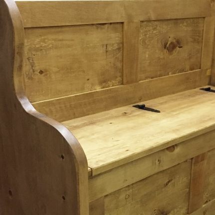 Reclaimed timbers are either lightly sanded for a 'rustic' finish, or sanded further to a 'smooth' finish. The inherent nature of 'reclaimed' material means that each item of furniture will present it's own unique features. Species of timber, colouration & characteristics will vary from piece to piece. Natural features & imperfections, saw & gripper marks, shakes & splits, nail holes, random notches & other features from it's previous use, are all maintained as evidence and an intended characteristic of both finishes. Also considered a more care free 'living finish', the tinted wax highlights the unique characteristics of each piece of timber. These finishes can be left to develop & improve with time & use. In the knowledge that, for high wear areas, an occasional fresh coat of wax will add back colour to worn and marked areas.