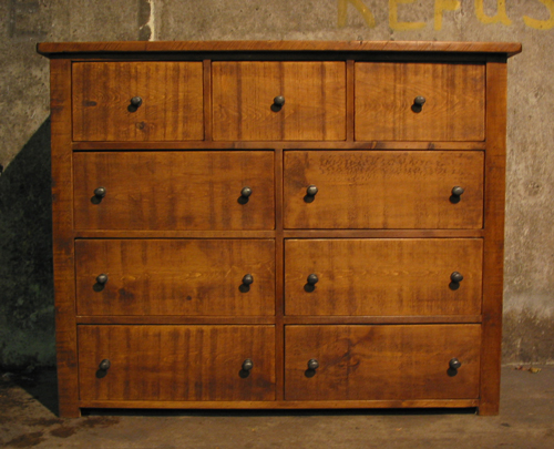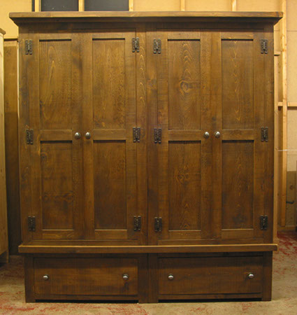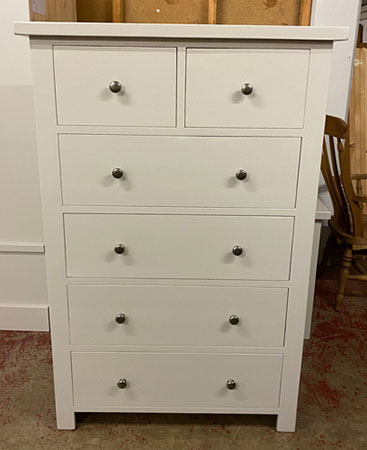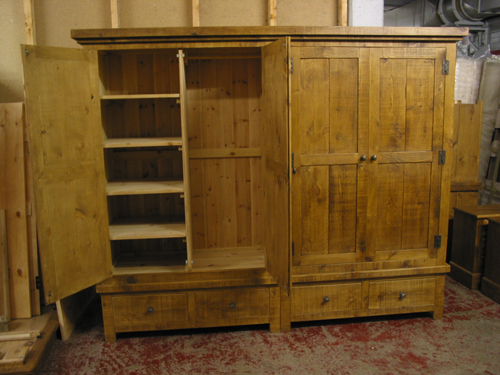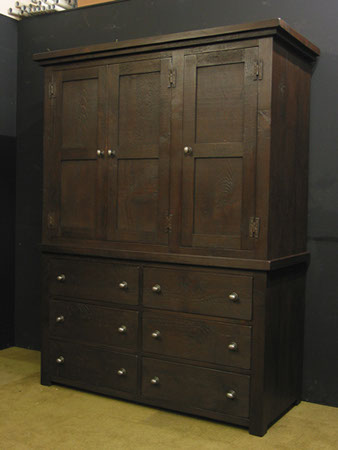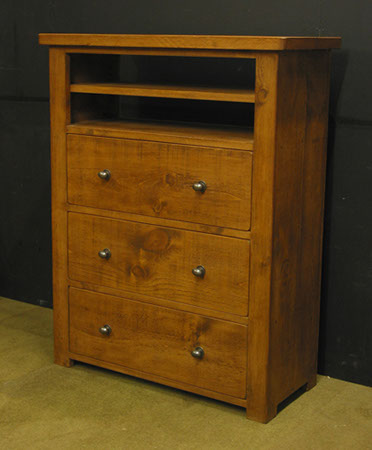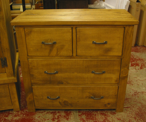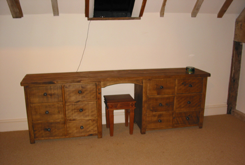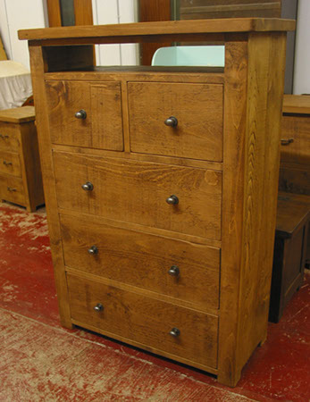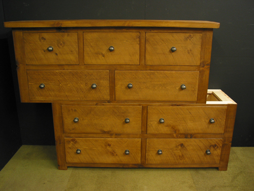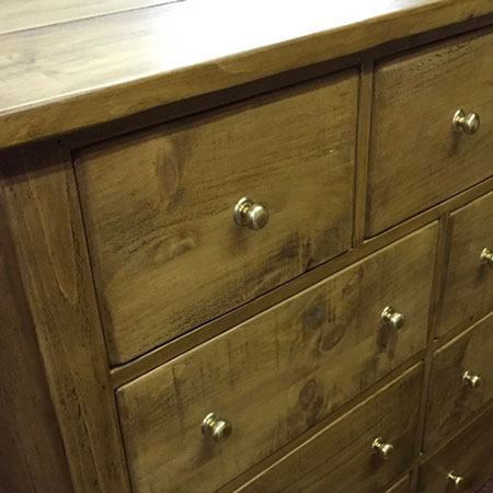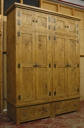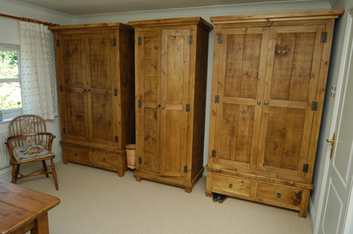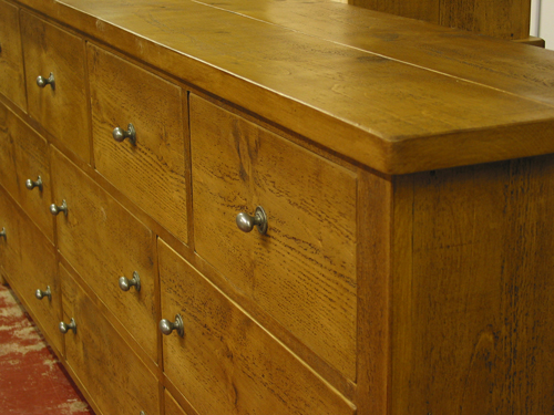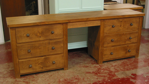 Solid 'Quebec Yellow' timber throughout, Planked construction, Chunky 1½" thick tops, Dovetail drawers, Cast iron oval knobs, Cast iron H-hinges, 'Styal' foot design.