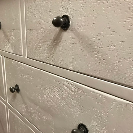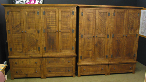 Textured rough sawn timber is carefully hand sanded to maintain natural features & imperfections, with saw & gripper marks an intended characteristic of this finish. As these characteristics vary from piece to piece, when combined with a hand applied 'antique wax', each item of furniture will develop it's own unique