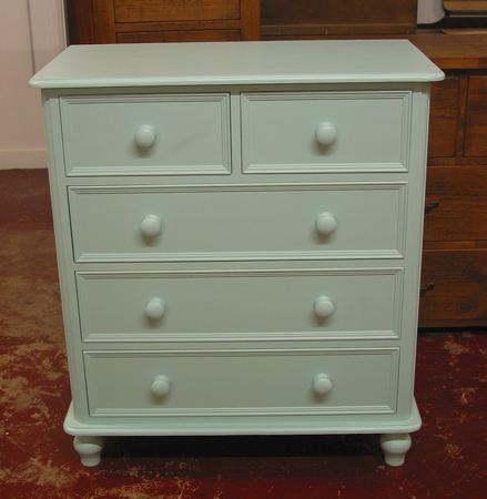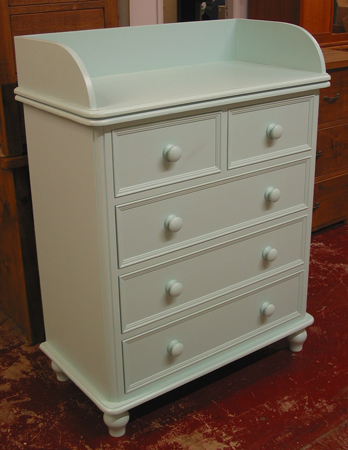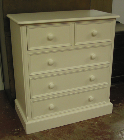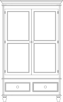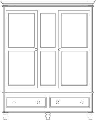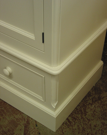 Cornice Tops to Wardrobes, Flat Door Panels with Beaded Frames, Beaded Drawer Faces, Moulded & Rounded Edges to Chest Tops & Base Shelf, Dovetail Drawers, Wooden Knobs, Discreet Butt-Hinges, Rounded Front Vertical Corner Detail, Tulip Feet, Squared or Arched Topped Door Panels.